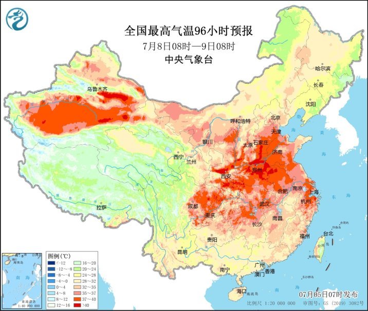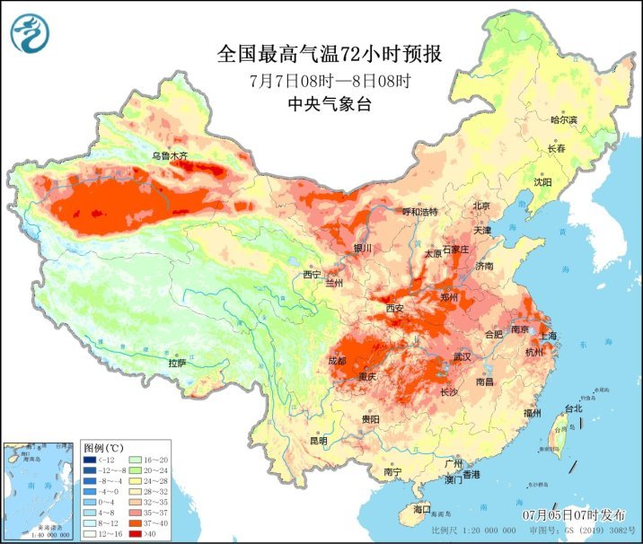 此外,明天起,高温天气将迅猛发展,四川盆地、西北地区东部、江汉、华北、黄淮、江淮、江南等地将先后出现35~37℃的高温天气,局地可达40℃左右。