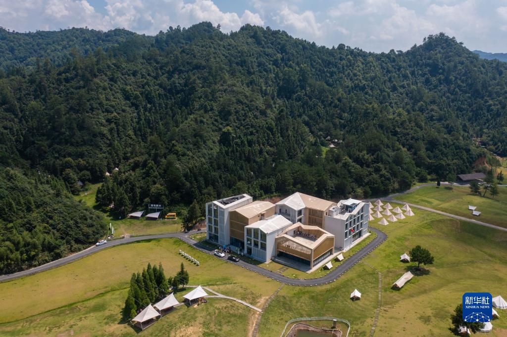 空中俯瞰杭州市临安区昌化镇风之谷国际营地(7月5日摄,无人机照片)。