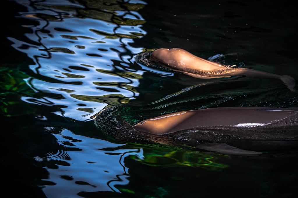 新华社武汉7月6日电(记者王自宸、谭元斌)时而下潜水底、时而探出水面、时而畅游水中……在中国科学院水生生物研究所白鱀豚馆,长江江豚幼豚“F9C22”正在母亲“福久”的陪伴下嬉戏,母女如影随形、其乐融融。