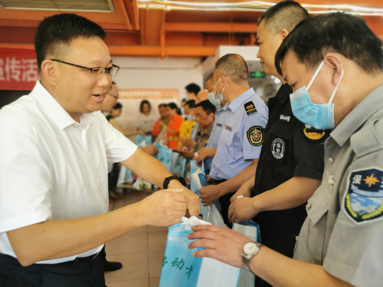 “我们都是给客人送东西,没想到,加入工会后,也能收到礼品。”外卖小哥江来拿着装有防暑用品的“清凉礼包”笑呵呵地说。