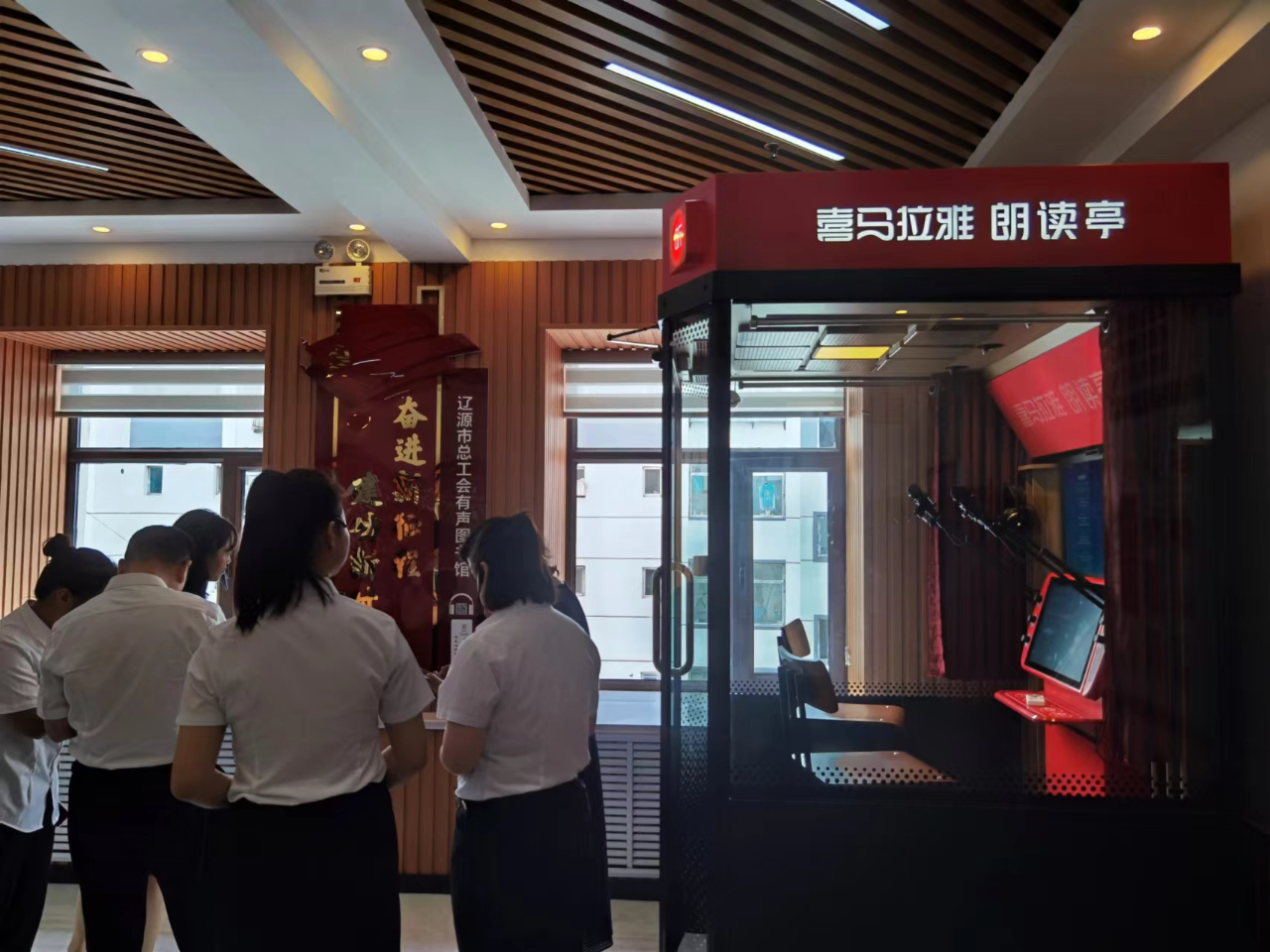 为把职工教育培训工作做实做优,辽源市总工会还在文化宫内职工教育培训基地建设了“智慧”职工书屋,这里设有无人自动借阅机、喜马拉雅朗读亭,戴上耳机即可随心所欲听书的耳机森林,扫描二维码就能把3万本有声电子书带回家的有声图书馆……职工们还可以现场制作有声明信片。