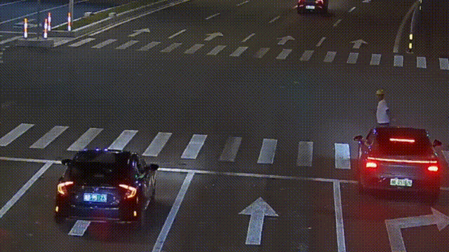 红绿灯前,正在等待通行的白色汽车突然连续实线变道,这是怎么回事?