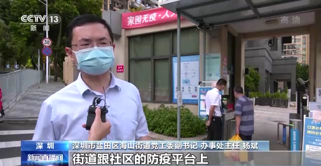 深圳市盐田区海山街道党工委副书记、办事处主任 杨斌:我们这个数据也能够实时地传输到街道跟社区的防疫平台上,戴口罩的情况跟保安值守的情况都能够全部反映到智慧平台上。