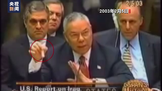 2003年2月5日,时任美国国务卿鲍威尔在联合国安理会会议上拿出一个装有白色粉末的试管,声称试管里装的是伊拉克正在研制化学武器的证据。