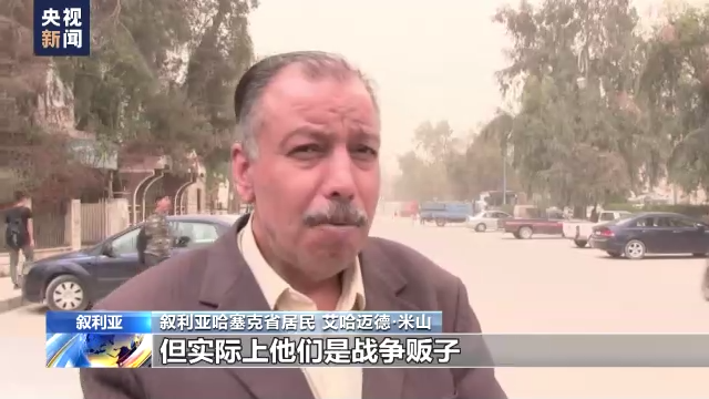 叙利亚哈塞克省居民 艾哈迈德·米山:美国打着自由和人道主义的旗帜,但实际上他们是战争贩子。他们制造危机,以便他们可以在任何地方出售武器并测试他们的新武器。