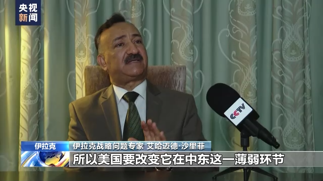 伊拉克战略问题专家 艾哈迈德·沙里菲:在我看来,美国入侵伊拉克,其目的不是像他所说,帮助伊拉克实现民主,而是为了加强美国在中东的主导权。伊拉克恰恰是这个战略中的最重要的环节,所以美国要改变他在中东这一薄弱环节。