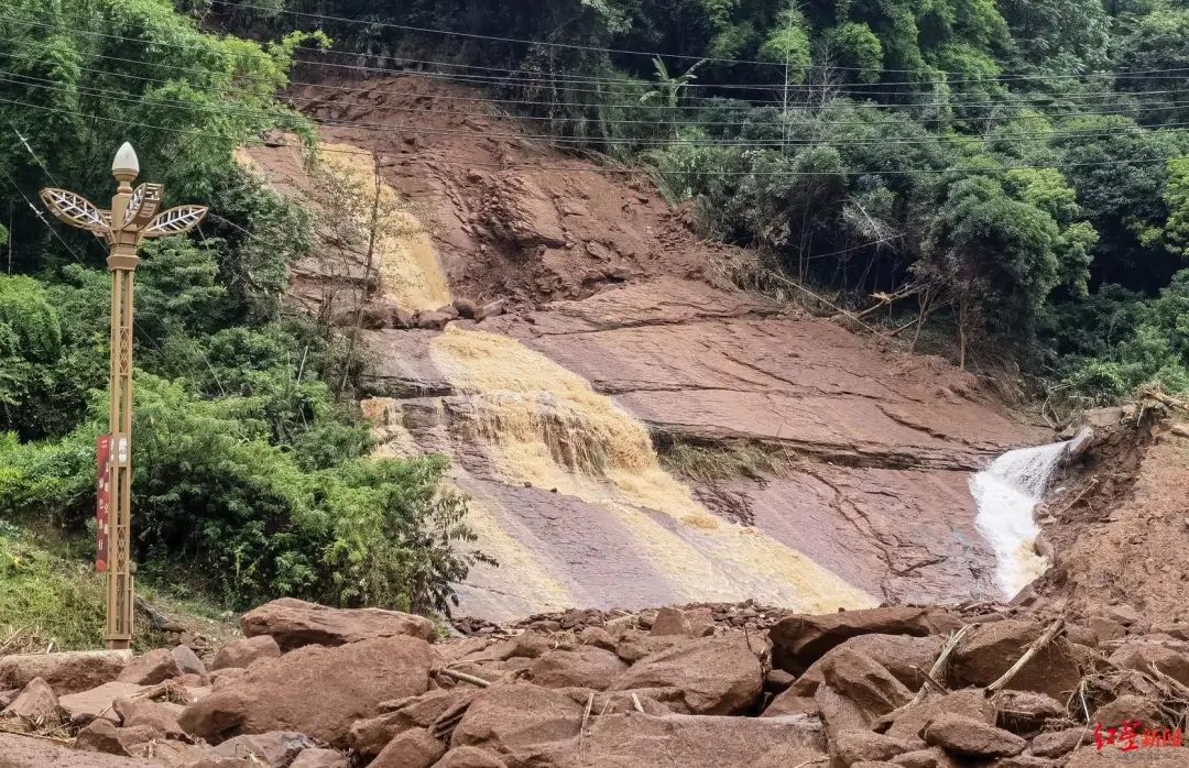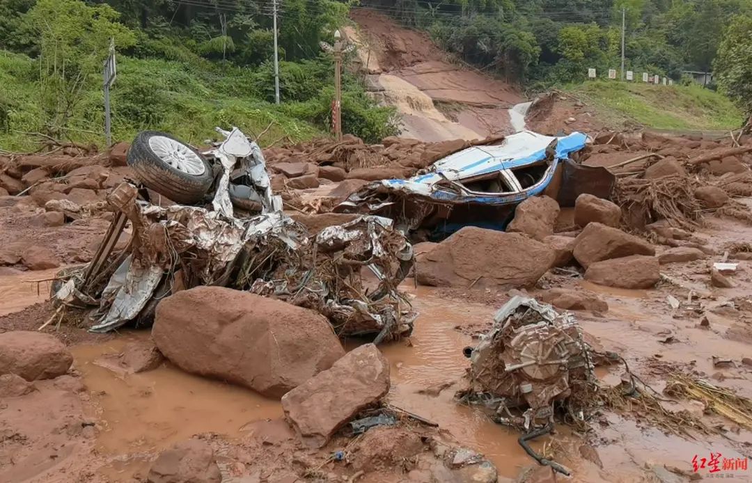 16日下午,红星新闻记者在事发现场看到,冲下来的泥石流约有半米多深,到处是大块的石头,两辆汽车损坏极其严重。“当时就听到嘭咚的声音,泥石流就来了。”出租车司机纪师傅惊魂未定地说,后面的情况记不清了,他是自己从车窗爬出来的。
