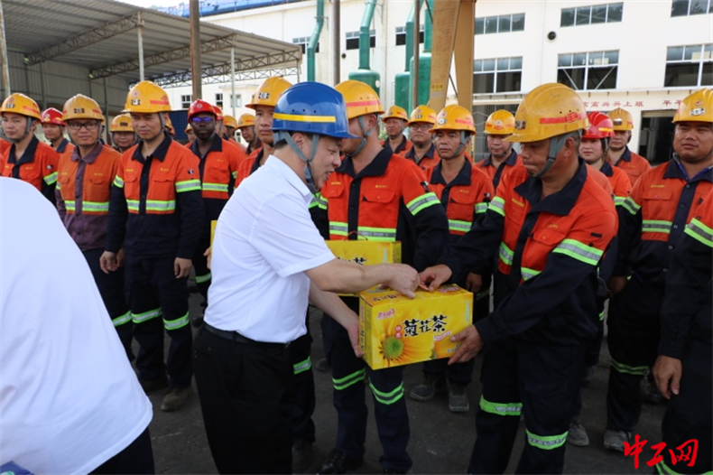 “车间一线岗位任务重,强度高,企业工会要时刻把职工的生产安全和所需所想放在心上,让工会成为职工最信赖的‘娘家人’”。7月15日上午,南平市总工会党组书记、常务副主席朱金生一行先后来到南平南孚电池有限公司、福建南平太阳电缆股份有限公司、赢创嘉联白碳黑(南平)有限公司等企业,慰问高温环境下作业的一线工作人员,把防暑降温物品送到每人的手中,表达对高温一线劳动者的关心与关爱。