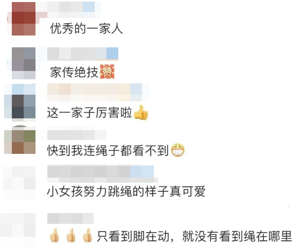 于大伟回忆,孩子小的时候喜欢看别的小朋友跳绳,不到两岁的时候别人去训练,她也跟着练,3岁时她开始尝试自己跳绳,4岁之前在30秒内就能跳100个。