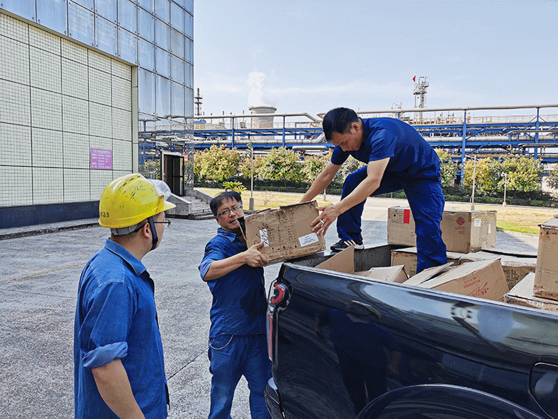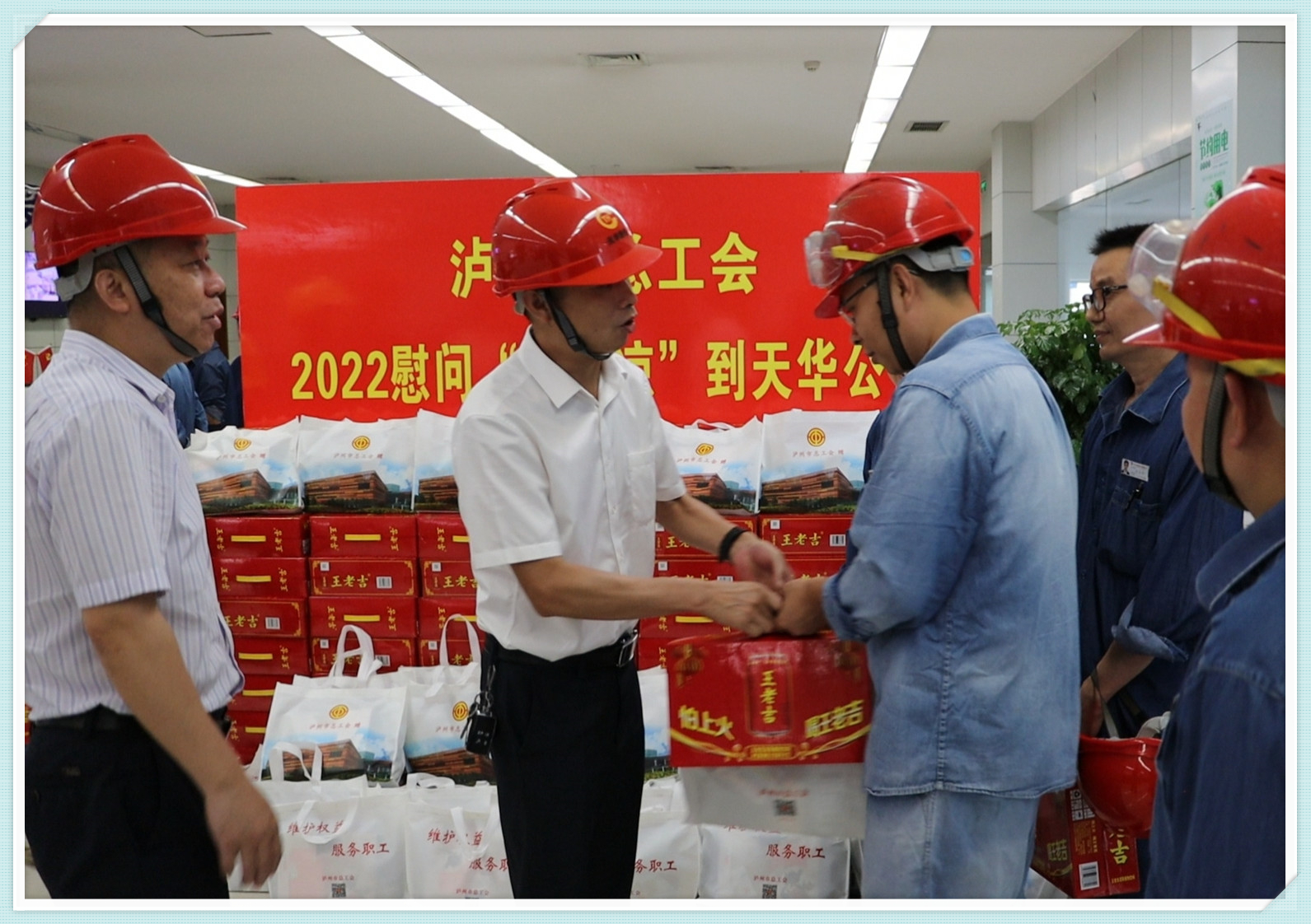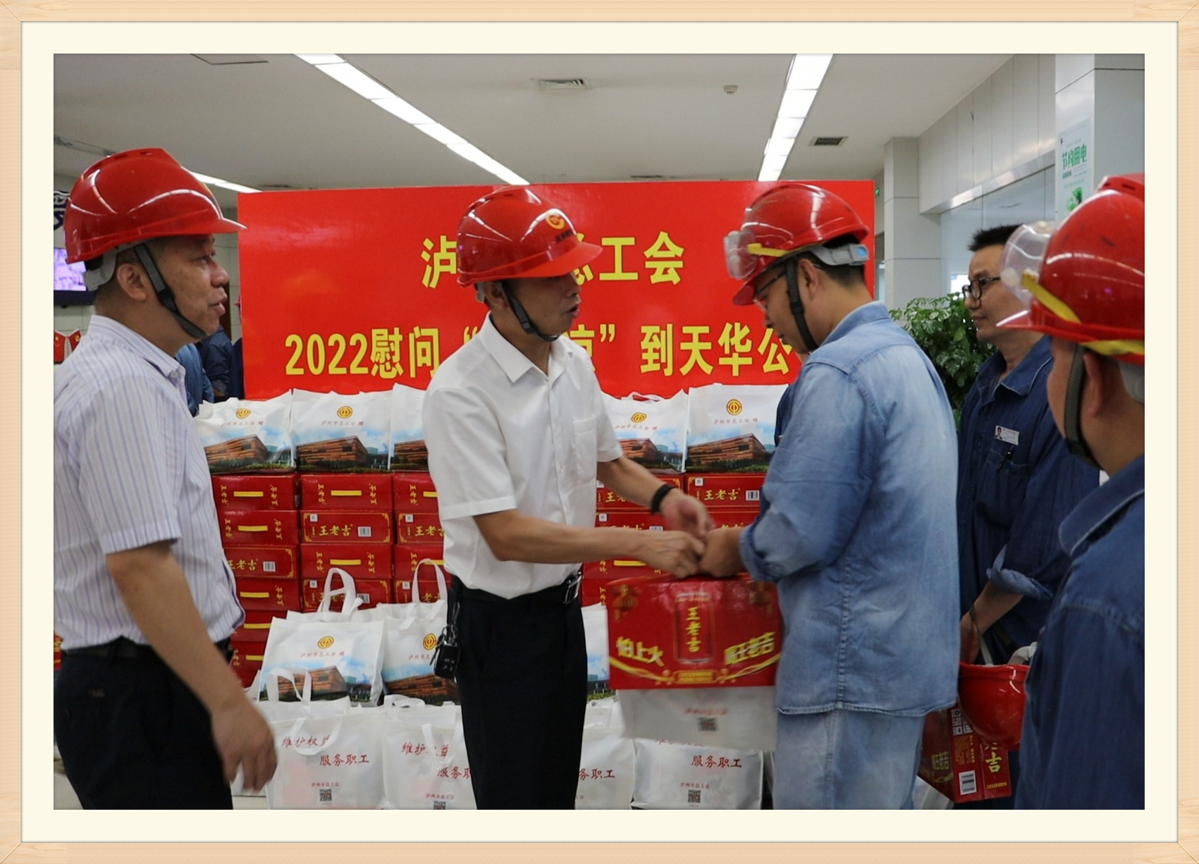 7月7日,四川省泸州市总工会到天华股份有限公司生产车间,为高温天气坚守岗位的化企职工送去关心关爱。