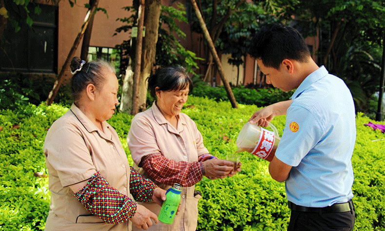 连日来,厦门华菲物业管理有限公司工会奔走在慰问的路上,为园区的户外劳动者送上凉茶和防暑用品,让坚守在防疫一线的他们能平安度夏。(厦门华菲物业管理有限公司 陈秀莉)
