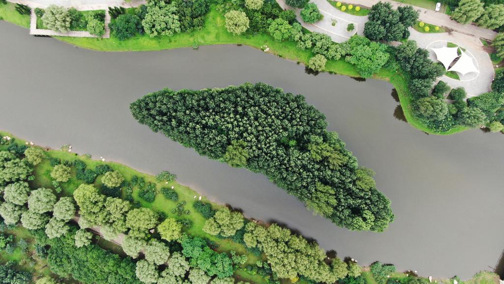 7月5日无人机拍摄的细河U谷公园。新华社记者 杨青 摄