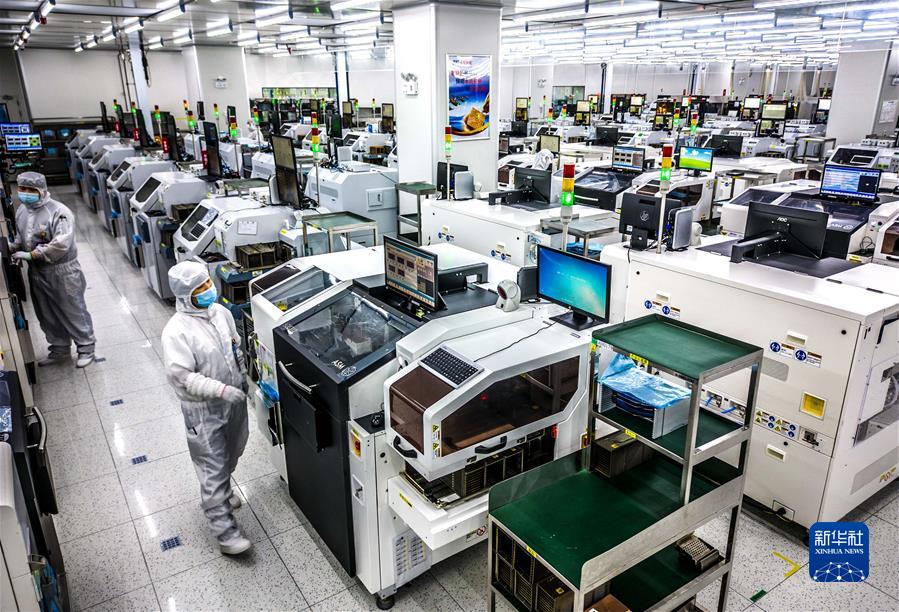 2022年5月26日,在安徽省合肥经济技术开发区的合肥通富微电子有限公司,员工在装片生产线上作业。新华社发(解琛 摄)