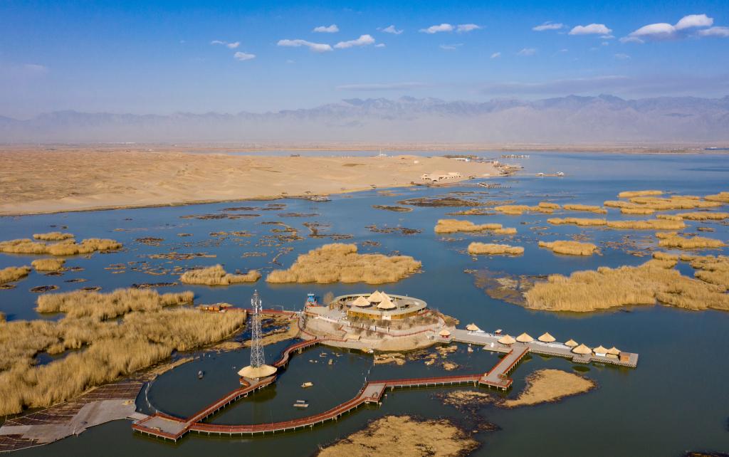 这是4月1日拍摄的沙湖鸟岛观光区(无人机照片)。新华社记者 冯开华 摄
