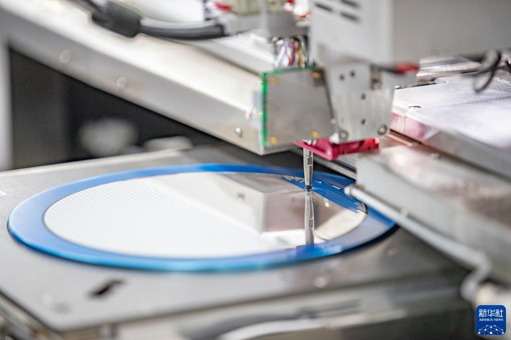 在重庆平创半导体研究院有限责任公司,工作人员利用设备对芯片进行贴片作业(2022年4月15日摄)。 新华社记者 黄伟 摄