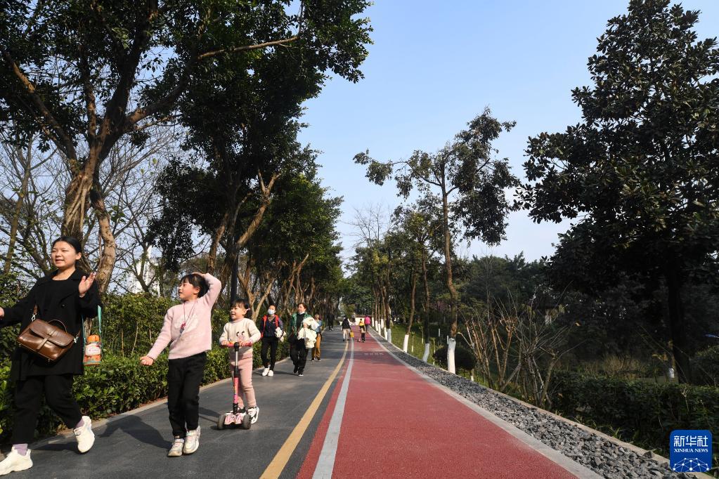 市民和游客在重庆市大渡口区重钢崖线山城步道游览(2022年2月15日摄)。 新华社记者 王全超 摄