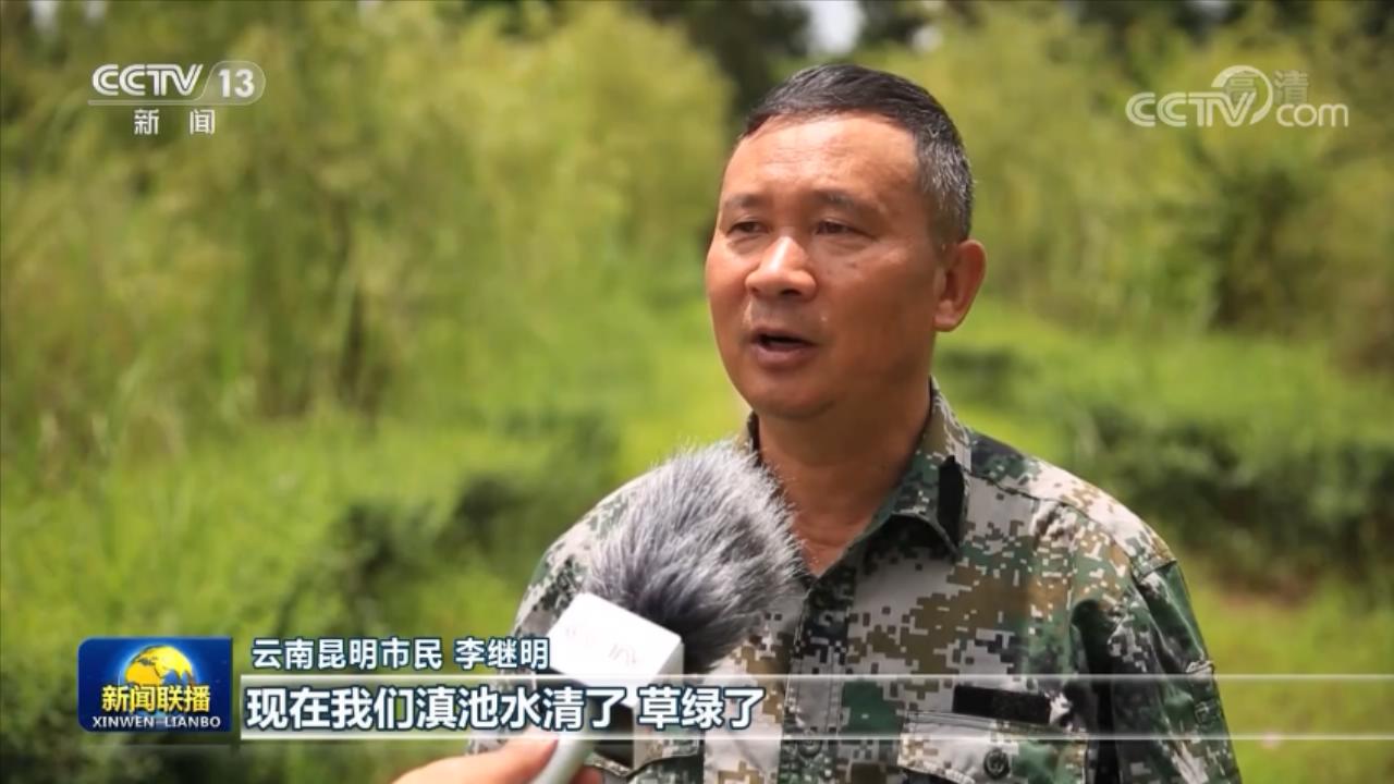 云南昆明市民 李继明:现在我们滇池水清了,草绿了,树也长起来了,珍稀的彩鹮都能见到它的身影。