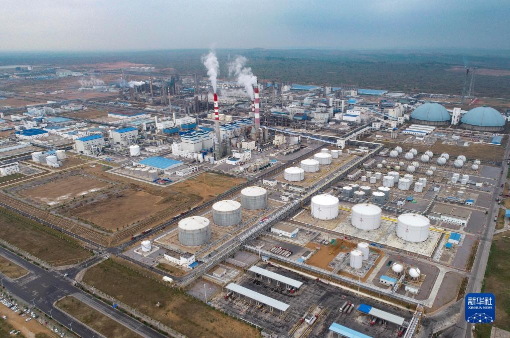 这是2021年8月12日拍摄的位于陕西省榆林市靖边县的延长石油全球首套煤油气资源综合利用项目(无人机照片)。 新华社记者 张博文 摄