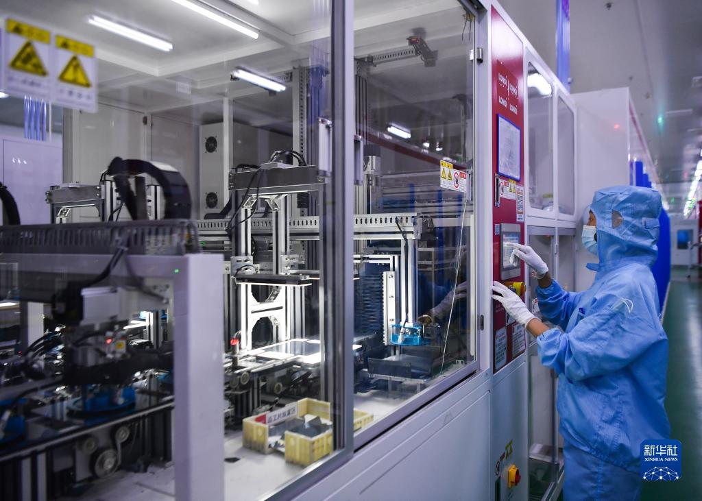 2022年7月19日,工作人员在位于陕西西安的隆基绿能科技股份有限公司单晶硅太阳能电池工厂内调试设备。 新华社记者 张博文 摄
