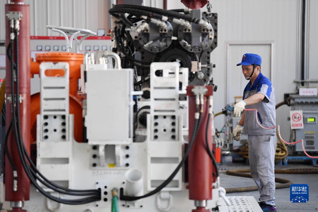 2022年6月17日,在秦创原总窗口所在地陕西省西咸新区的陕西太合智能钻探有限公司,工人准备对智能定向钻机进行性能调试。 新华社记者 李一博 摄