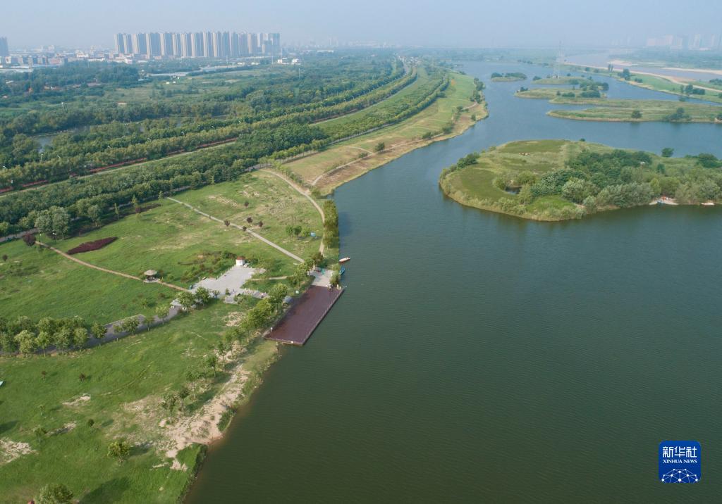 这是2022年7月31日拍摄的渭河西安段风光(无人机照片)。 新华社记者 张博文 摄