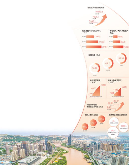 十年来,甘肃历史性解决绝对贫困问题,同全国一道全面建成小康社会;十年来,甘肃坚决扛起筑牢国家西部生态安全屏障政治责任,祁连山生态保护“由乱到治,大见成效”,黄河流域生态保护和高质量发展规划体系基本构建;十年来,甘肃以经济结构调整助推高质量发展,地区生产总值跨上万亿元台阶,一般公共预算收入突破千亿元大关……