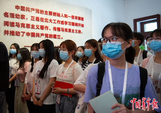 2021年7月7日,北大红楼,北京联合大学的学生们参加北京红色教育资源融入思政课实践教学的第三场示范教学课。中青报·中青网记者 李峥苨/摄