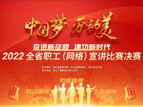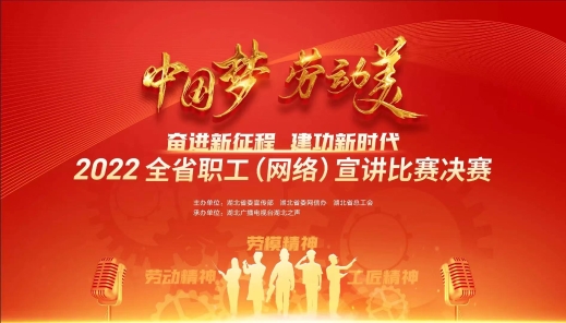 “中国梦•劳动美——奋进新征程 建功新时代”湖北省职工(网络)宣讲比赛决赛(一)8月19日上午8:50,由湖北省委宣传部、省委网信办、省总工会主办的“中国梦•劳动美——奋进新征程 建功新时代”全省职工(网络)宣讲比赛决赛在湖北省图书馆长江报告厅举行,18名选手参与决赛,围绕职工故事、劳模故事、行业发展故事展开宣讲,以“小切口”呈现“大主题”。让我们一起聆听,荆楚大地上,千万职工共同奏响的“劳动光荣、创造伟大”最强音!中工网首页、视频号、抖音、微博等平台同步直播。