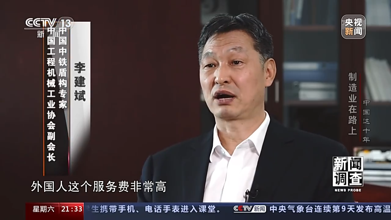 中国工程机械工业协会副会长 中国中铁盾构专家 李建斌:两台将近七个亿,外国人这个服务费非常高,服务的时间非常短,每天就是八小时,过了人家不上班,我们是三班制,他是一班制,机器坏了我们就要等,这个是对我们刺激非常大,你不掌握技术,所以说你处处受制于人。