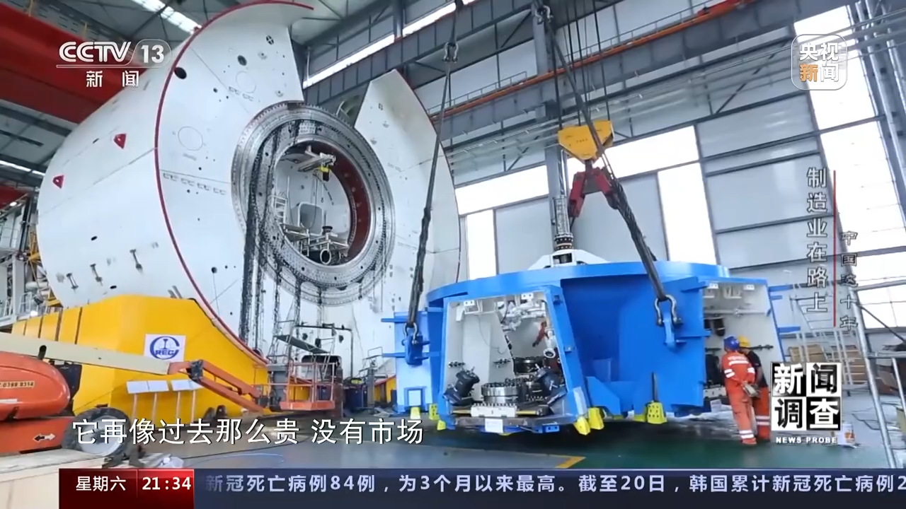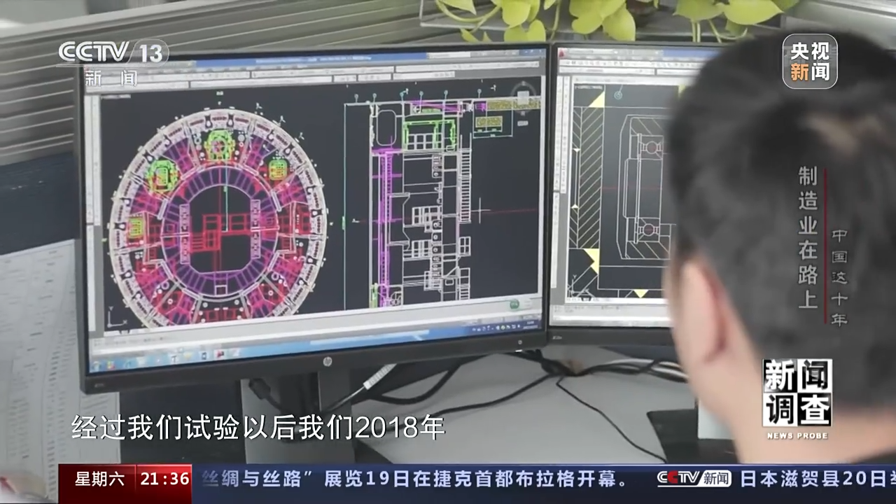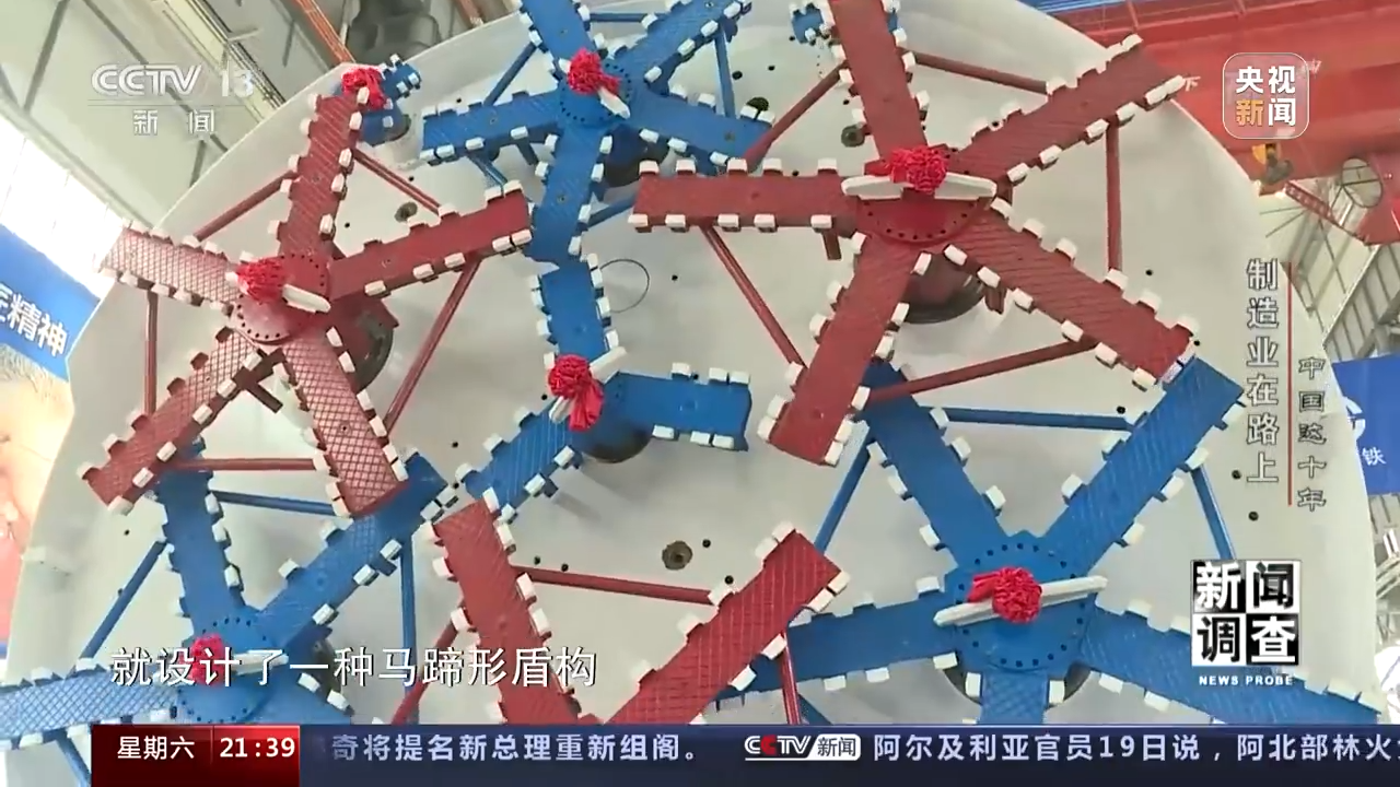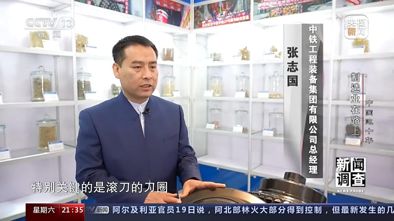 中铁工程装备集团有限公司总经理 张志国:我们在研究这个刀圈的时候和清华大学等大的院校,专业的院校进行合作,经过我们实验以后我们2018年实现了国产化,目前整个中国市场上的刀具国产的刀具占到了90%。