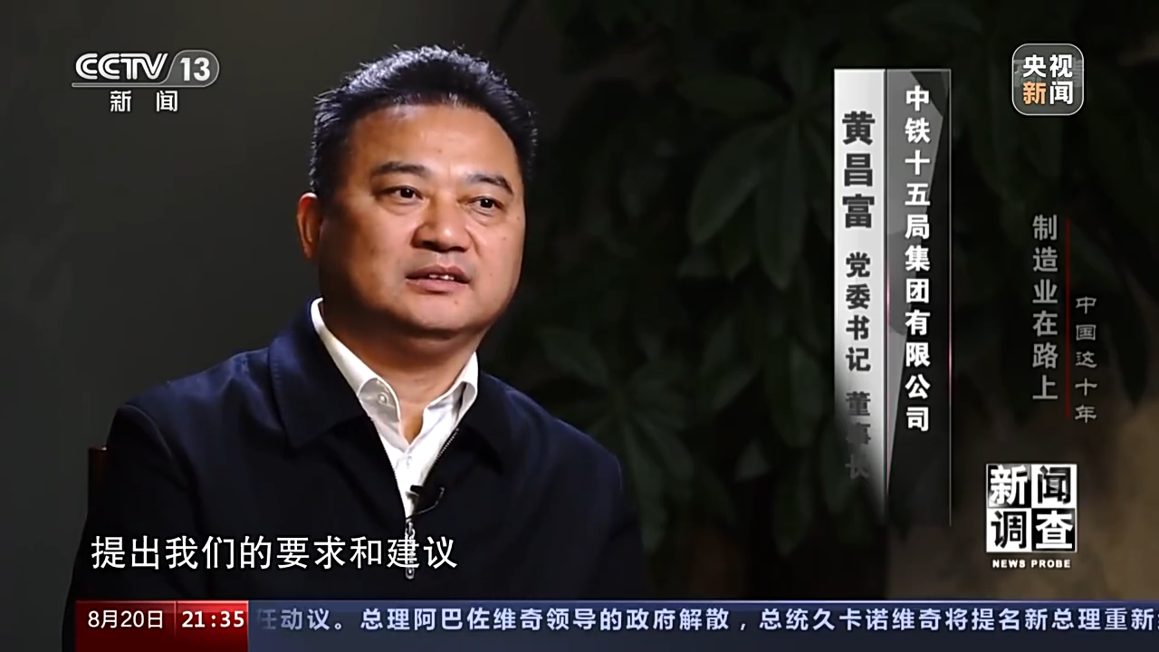 中铁十五局集团有限公司党委书记 董事长 黄昌富:比如说砂卵石地层,对这个刀具的磨损是非常厉害的,所以我们就给它这个刀具的配置要提出我们的要求和建议。