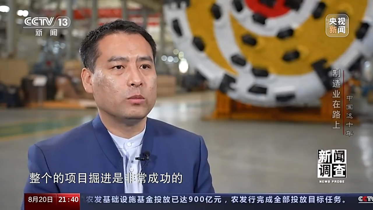 中铁工程装备集团有限公司总经理 张志国:(工程)当中设备它通过了,一个大的球一样的岩石,这个是当时在地质勘察阶段是没有发现的,但是就是因为盾构机设计的它的性能是比较好的,整个的项目掘进是非常成功的。