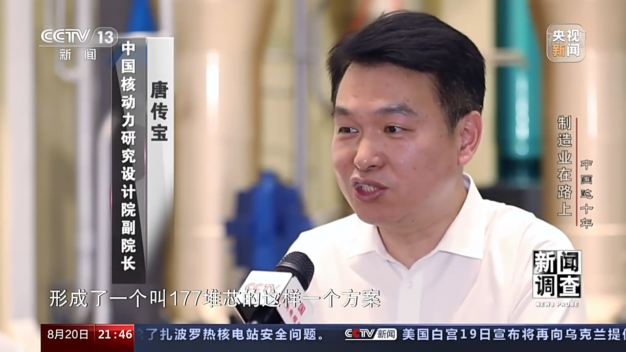 中国核动力研究设计院副院长 唐传宝:在研讨过程当中最终通过头脑风暴,大家的讨论,形成了一个叫177堆芯的这样一个方案,在这个基础上也形成了核电技术方案,这也是我们华龙一号的一个雏形。
