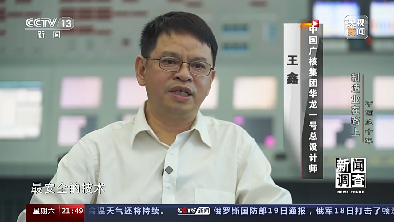 中国广核集团华龙一号总设计师 王鑫:为什么说它最严格就是因为它要求按照当今最好的、最可靠的、最安全的技术,要应用在核电上,这是最严格审查最核心的本质,我们顺利通过了,我们通过这样的审查,我们进入欧洲用户,进入世界各地核电市场开发都具备了条件。