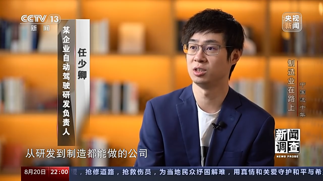 某企业自动驾驶研发负责人 任少卿:中国最近五到十年,在这个激光雷达这样的传感器的领域,实际上涌现出了一批,从研发到制造都能做的公司,从这个方案算法里面,其实也涌现了一批能去做这个完整解决方案的一个公司。所以其实我们有理由相信,就是在之后中国的汽车产业,在智能化的这个维度上,它其实在世界舞台上会占有越来越多,也越来越重要这样的位置。