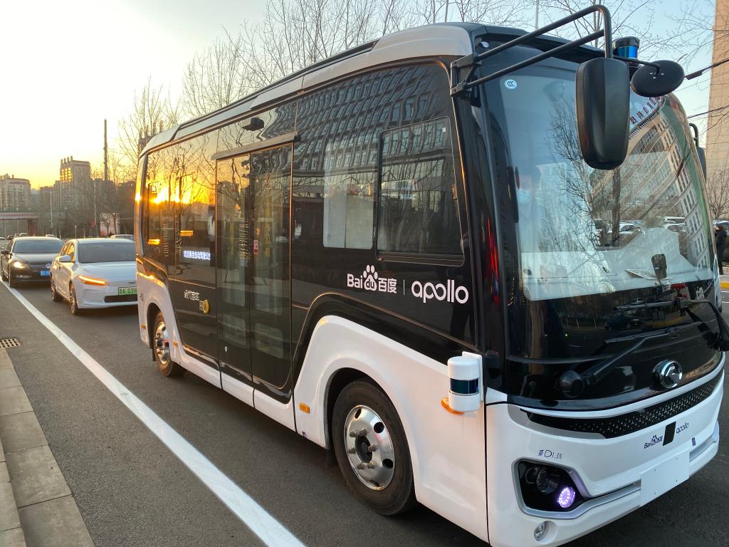 这是山西阳泉市的自动驾驶公交车(2022年2月22日摄)。 新华社记者 陈志豪 摄