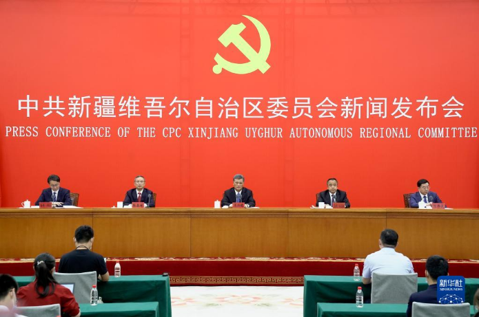 8月27日拍摄的“中国这十年·新疆”主题新闻发布会现场。新华社记者 白志强 摄