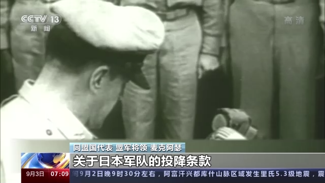 同盟国代表 盟军最高统帅 麦克阿瑟:将在这里给出和接受的关于日本皇军的投降条款都包含在你们面前的法律文件中。