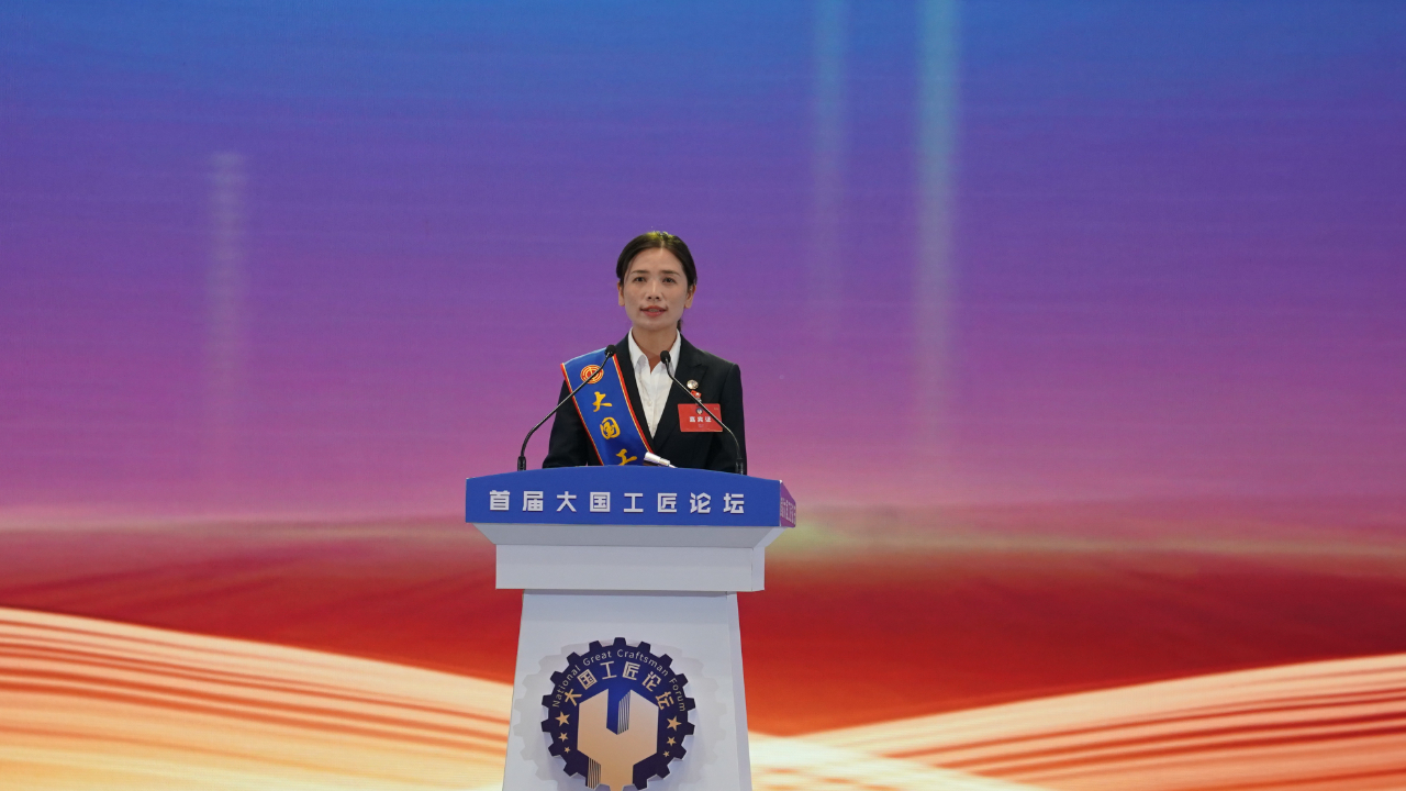 9月2日,首届大国工匠论坛在长沙隆重举行。图为“大国工匠”代表易冉宣读致全国各行各业工匠和技能人才倡议书。