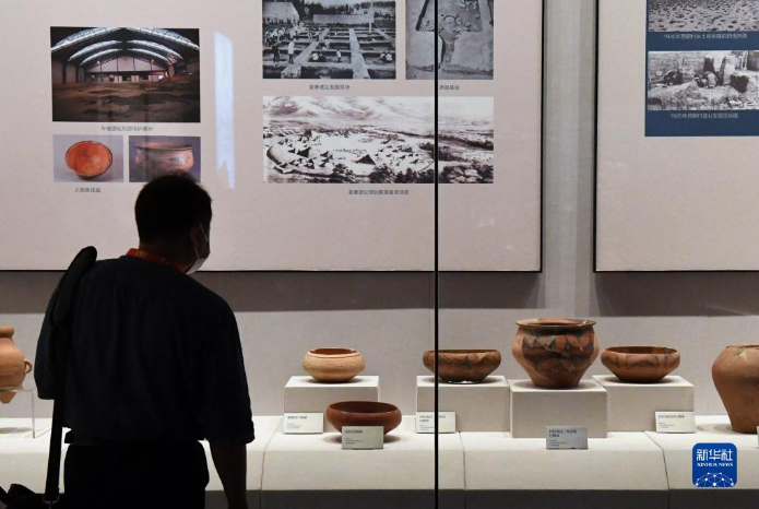 9月4日,参观者在“繁星盈天——中国百年百大考古发现展”上观看展品。新华社记者 李安 摄