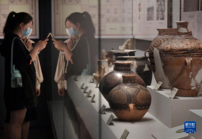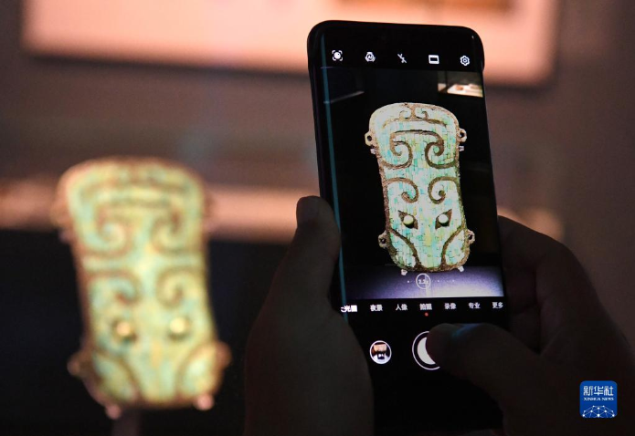 9月4日,参观者在“繁星盈天——中国百年百大考古发现展”上拍摄展品。新华社记者 李安 摄