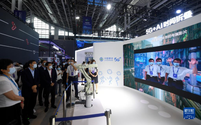 参观者在河北省石家庄市举办的2021中国国际数字经济博览会上参观(2021年9月6日摄)。新华社记者 王晓 摄
