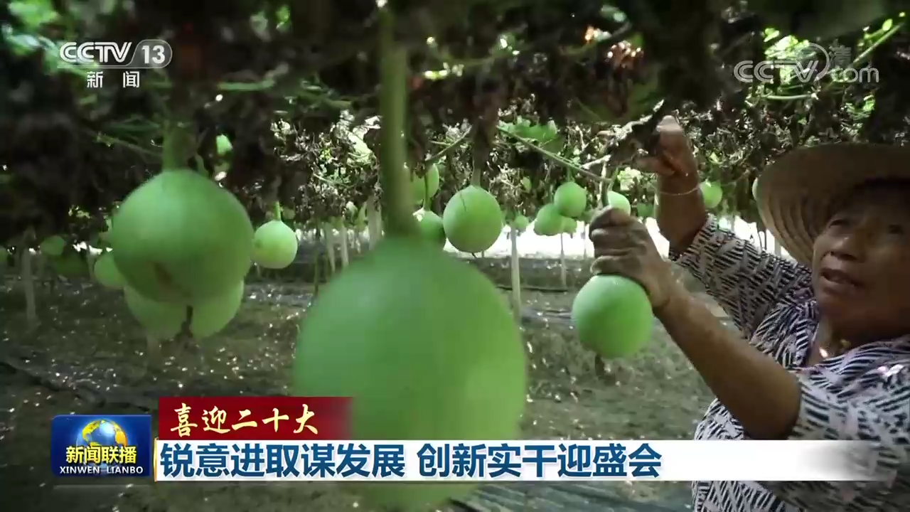 金秋时节,神州大地一片丰收景象。在黑龙江垦区军川农场,稻花飘香,预计今年亩产超过1200斤。在安徽颍上,小瓜蒌成为当地村民增收致富大产业,人们带着丰收的喜悦迎接党的二十大。