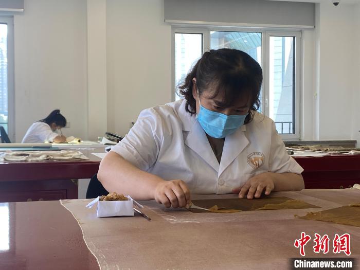 工作人员进行书画修复工作。李明芮 摄