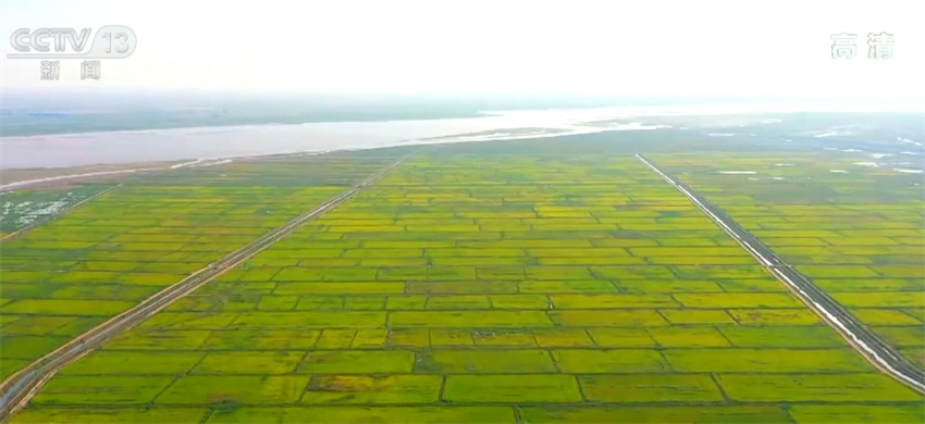 我们现在看到的是黄河五原段处于黄河流域最北端的“几”字形顶端。黄河五原县段全长60多公里,黄河水润泽着这片大地,带来了丰饶与肥沃。河套地区不仅地势平坦,而且天然具备黄河灌溉之利,历代都以水草丰美、物产丰盈著称。如今,良好的生态环境已成为五原一张亮丽的名片。