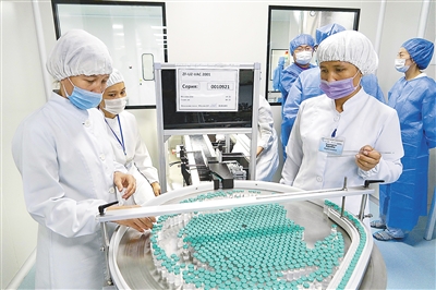 2021年9月,在乌兹别克斯坦制药企业祖拉贝克实验室有限公司,中国新冠重组蛋白疫苗正式投产。 扎法尔 摄(新华社发)