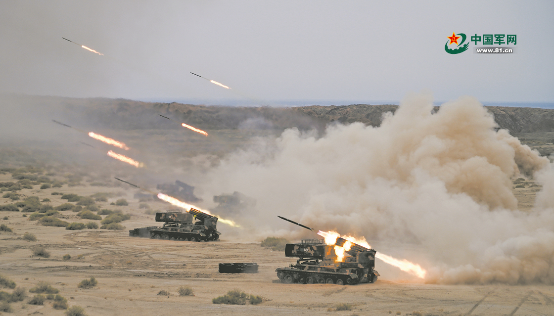 火箭炮群实施集火射击。