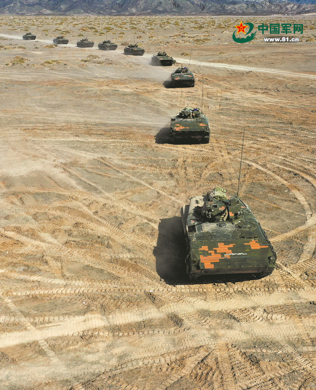 步战车分队向预定阵地机动。