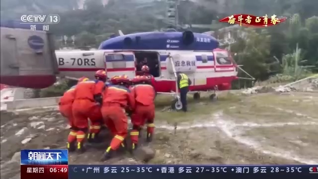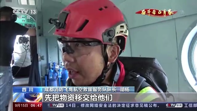 成都消防飞鹰航空救援服务队队长 胡杨:这8个人不需要转移,现在缺物资。先把物资移交给他们,告诉他们后续自救生存的方案后我们就回来。