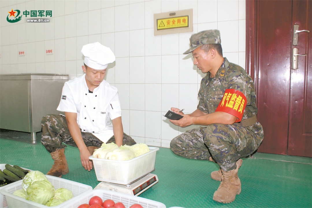 高佳旭正在对伙食配送进行监督。张广彬 摄